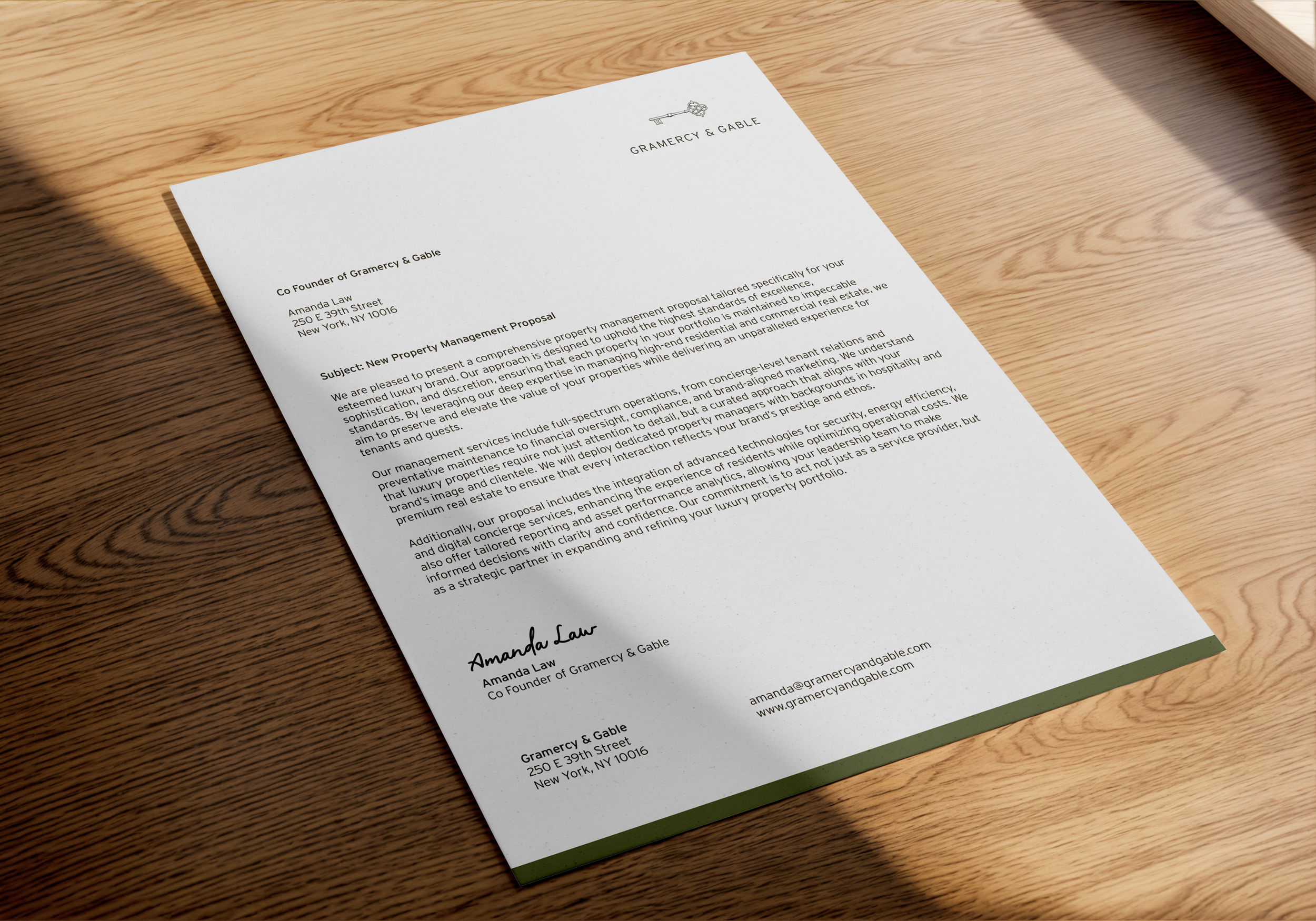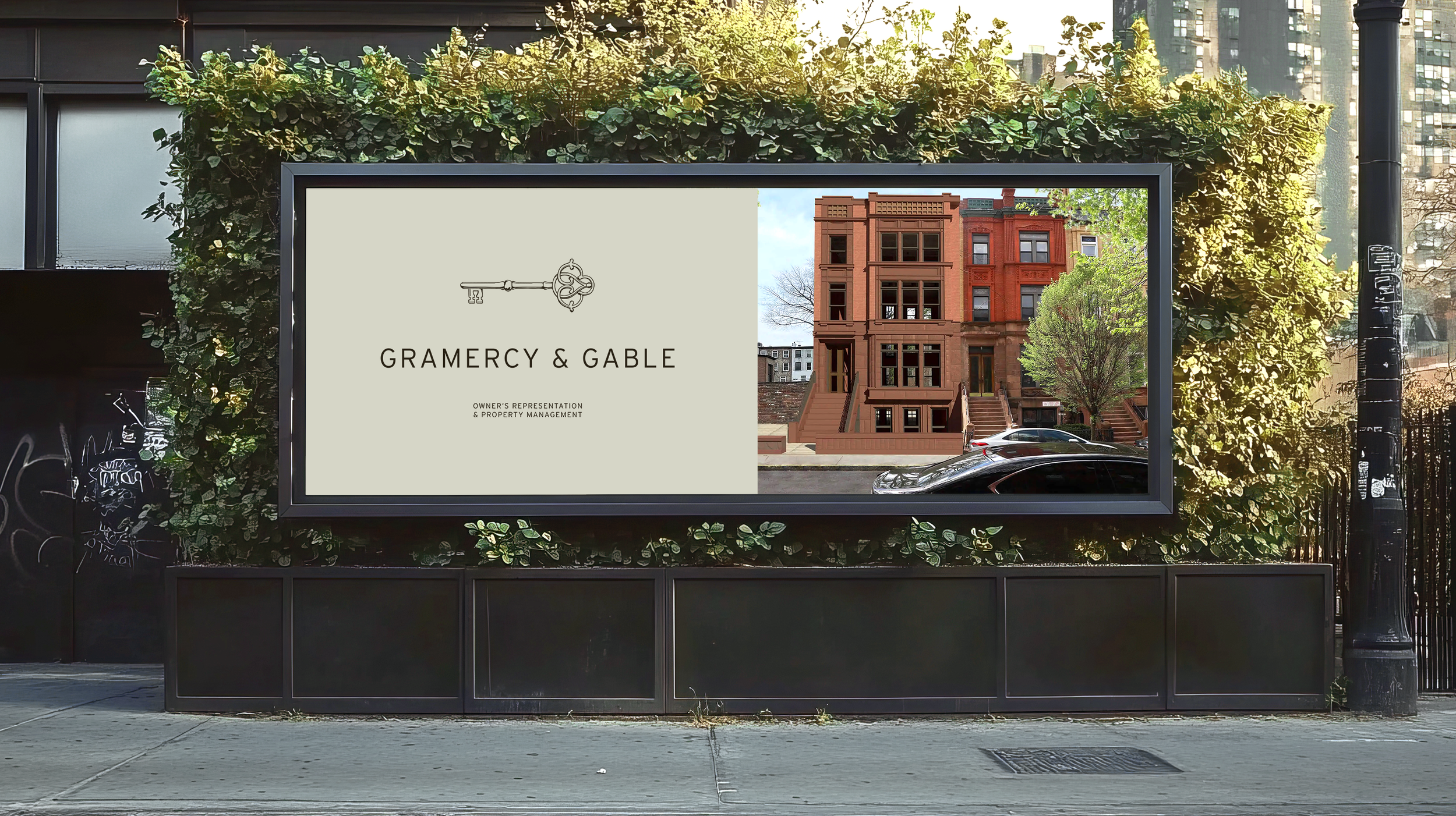 With a name like Gramercy & Gable, the logo needed to subtly evoke the iconic key to Gramercy Park. I designed a custom key symbol by drawing inspiration from the ornate wrought iron gates surrounding the park, integrating aerial architectural motifs, and shaping the key’s head from two mirrored “G”s, creating a mark that feels both historic and bespoke.