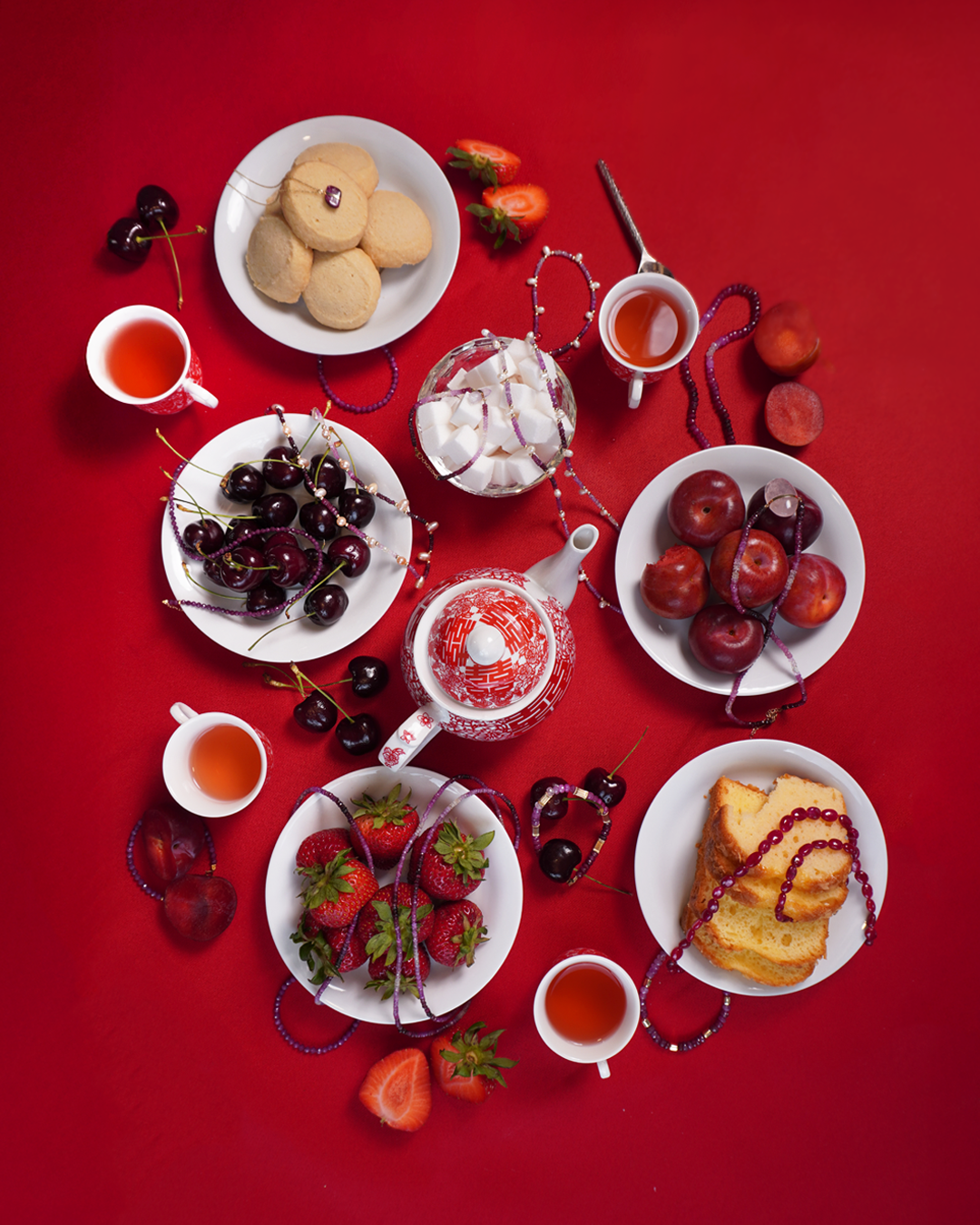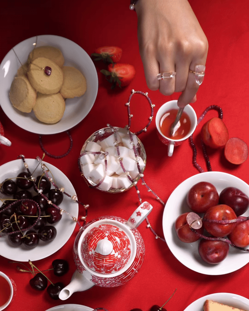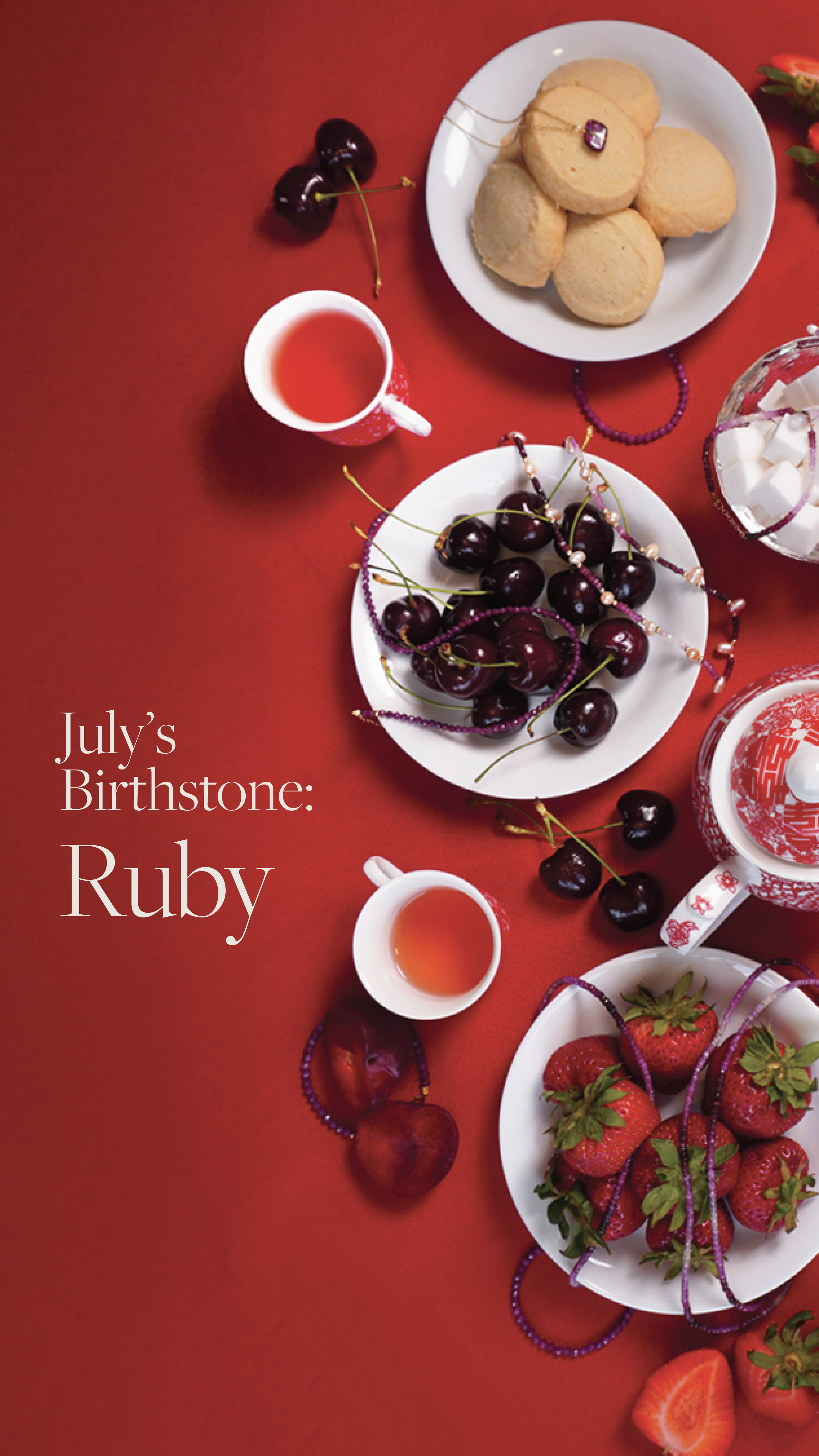 This campaign featured July’s birthstone, ruby, within a decadent tea setting. The richness of the cakes and fruits enhanced the stone’s perception and conveyed a sense of opulence, indulgence, and luxury.
