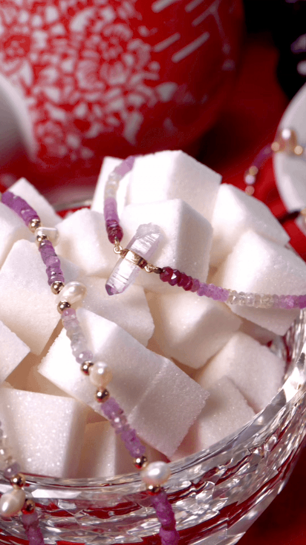 This campaign showcased JIA JIA’s sunny citrine pieces at the height of summer, styled alongside sweet tea and sugar cubes. Set against a minimalist backdrop, the classic seasonal visuals and warm palette allowed the jewelry’s color and detail to pop.