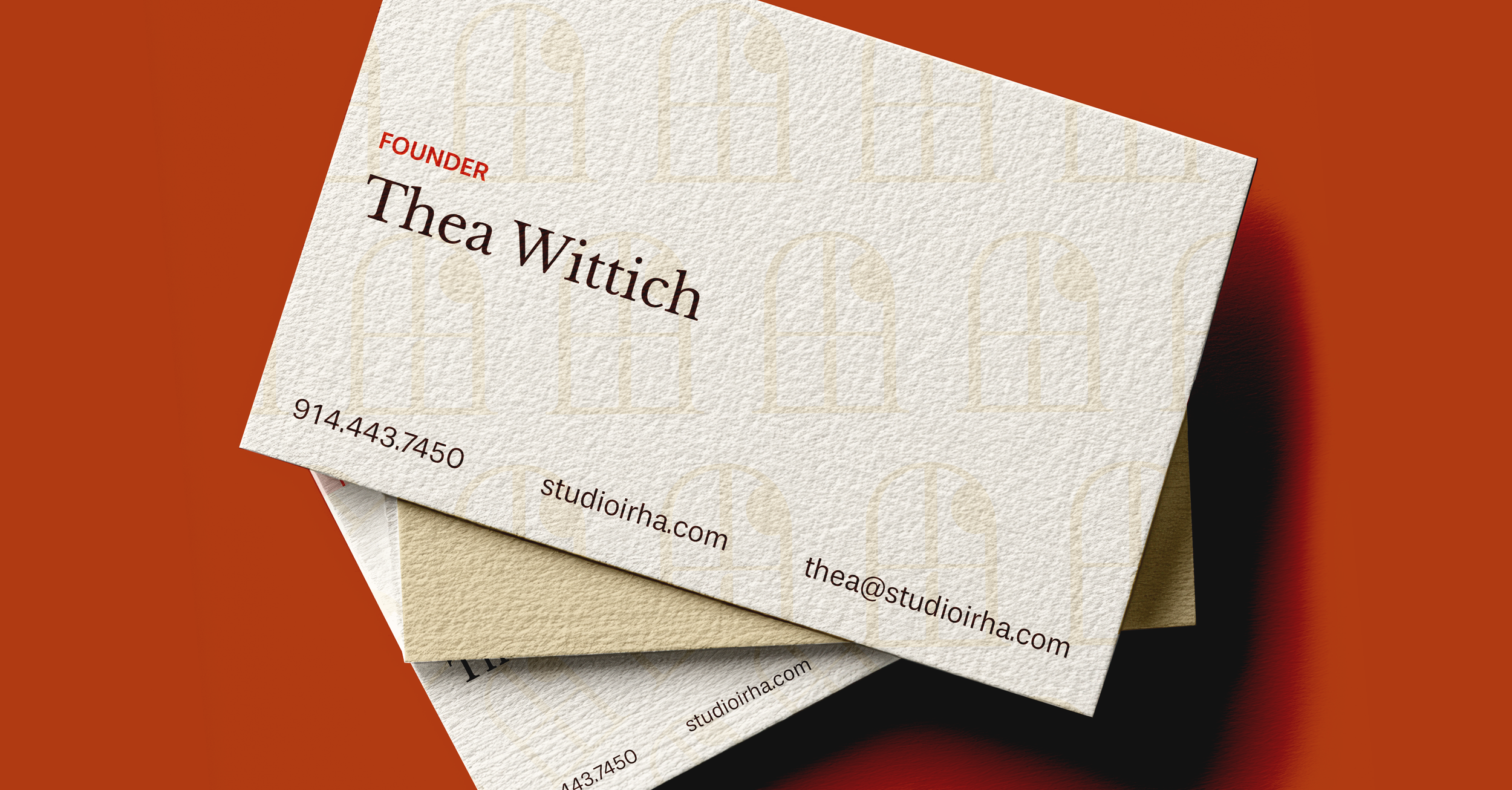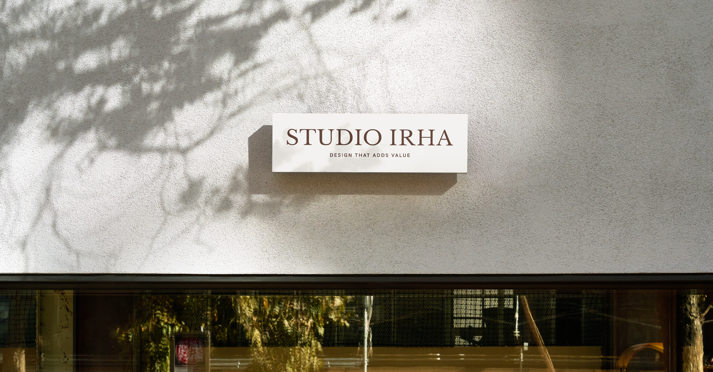 To reflect Studio IRHA’s balance of approachability and authority, we built a warm color palette centered on a deep orange, a hue rarely seen in other architectural design brands. We selected a serif typeface to give the brand a grounded, serious presence, and the symbol mirrors the font’s line weights and curves to create a cohesive logo suite.